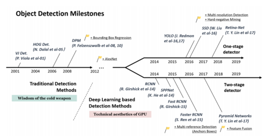 - 물체가 있을 법한 위치의 후보(proposals)들을 뽑아내는 단계 이후, 실제로 물체가 있는지를 Classification과 정확한 바운딩 박스를 구하는 Regression을 수행하는 단계가 분리되어 있음.
