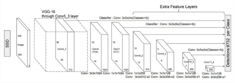 - VGG16을 base network로 사용하고, 보조 network(auxiliary network)를 추가한 구조