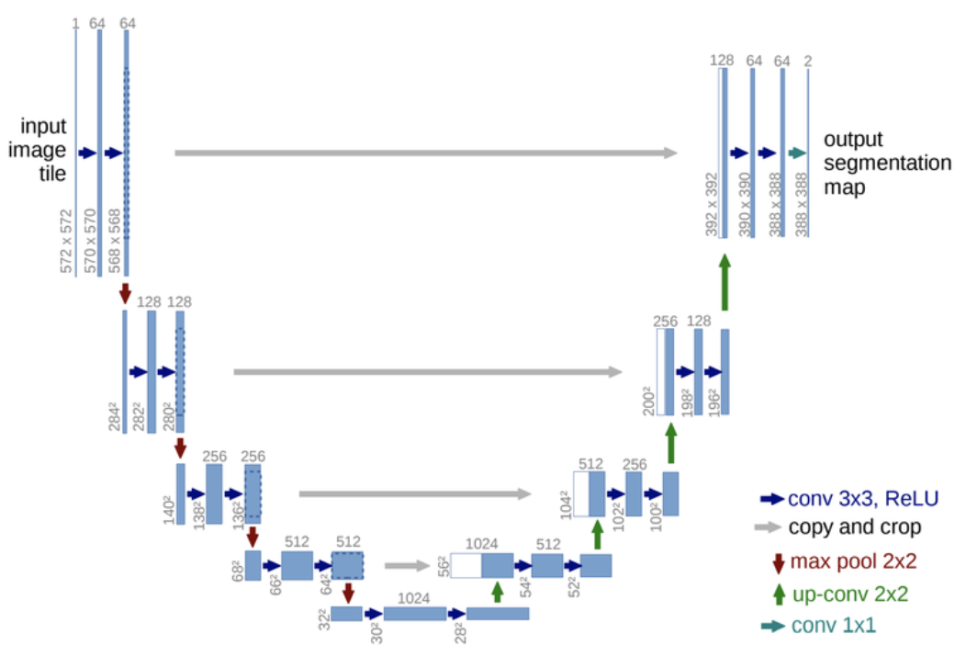 - 좌측의 Contracting path는 일반적으로 우리가 사용해왔던 Convolution network와 유사한 구조를 가짐.