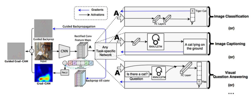 - Image Classification, Image captioning, Visual question Answering 등에 Grad-CAM이 적용될 수 있음.