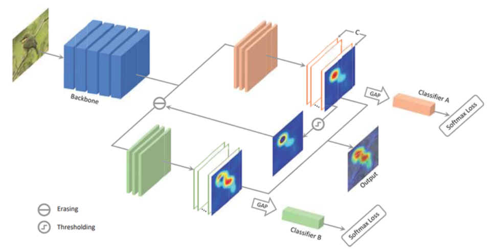 - CAM 모델이 특정 부위에 집중해 학습하는 것을 막기 위해 브랜치를 두 가지로 두어 너무 높은 점수를 지워줌으로써 주변의 특성 또한 반영함.