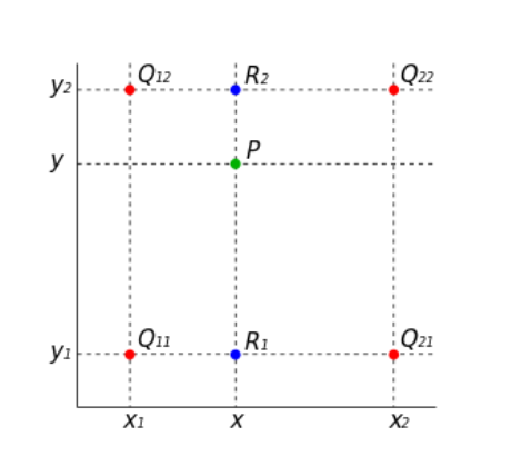 - 두 축에 대해 선형보간법을 통해 필요한 값을 메우는 방식